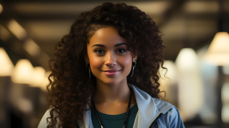 portrait of mixed race brown skinned beautiful young woman looking at camera ai generated