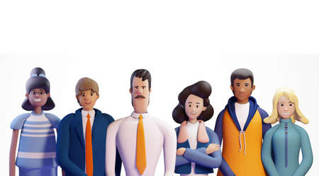 Group of young professional people. business people, team group portrait, 3 D rendering illustration.