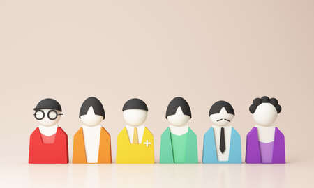 Group of people with different hairstyles and clothes. 3d rendering