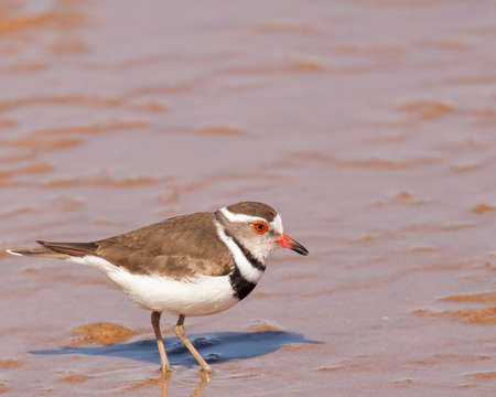 Three-banded plover wading in Walvis Bay, Namibia.