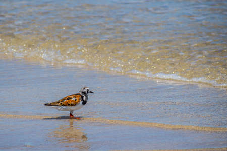 Nesting Ruddy turnstone wading bird Arenaria interpres along the shoreline of Barefoot Beach, Bonita Springs, Florida.
