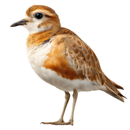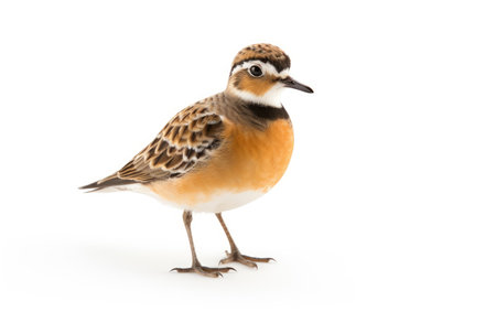 Captivating image of an isolated Mountain Plover showcasing its remarkable feather patterns and vibrant colors against a pure white background, perfect for nature and wildlife enthusiasts.