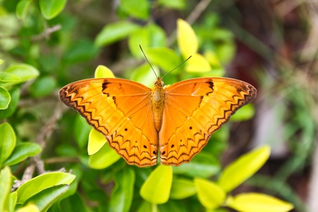 Butterfly on a green leaf in the garden, Thailand.