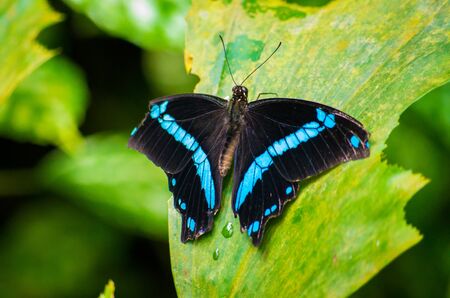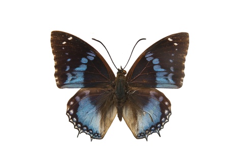 Black and blue butterfly Baeotus japetus isolated on white background