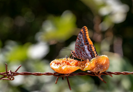 The Tawny Rajah butterfly sucking food from fruit