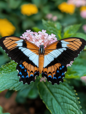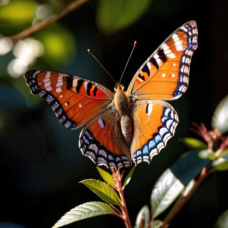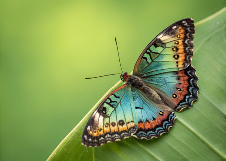 Stunning close-up of a vibrant butterfly showcasing intricate wing patterns in a variety of colors. Ideal for nature enthusiasts and artistic projects.