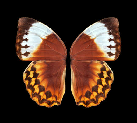 wings of bright colorful tropical butterfly isolated on black. wings of a large exotic orange butterfly for design