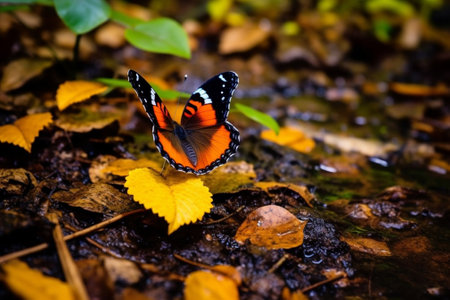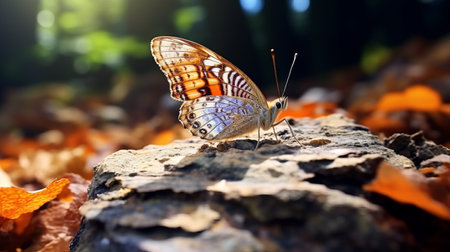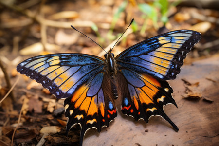 Generative AI : A closeup of Beauty butterfly resting on ground