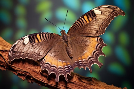 Close up of a multicolor butterfly in forest. Generative AI