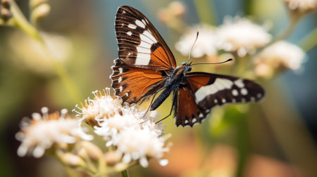 Generative AI : Braun butterfly with closed wings on a white flower High quality photo Selective focus