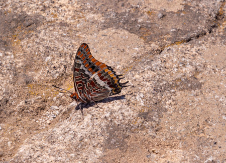 Colorful butterflies and stripes on beautiful wings are searching for food sources that are rich in salt and minerals.