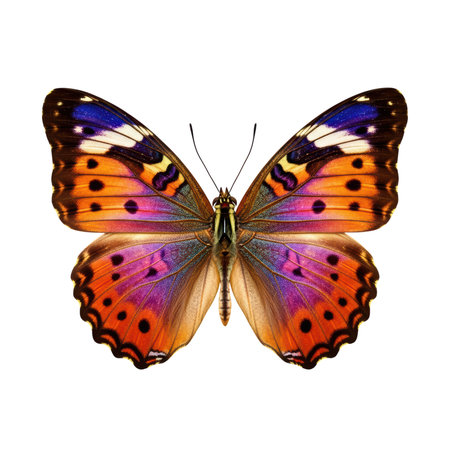 Vibrant butterfly with orange and purple wings on transparent background