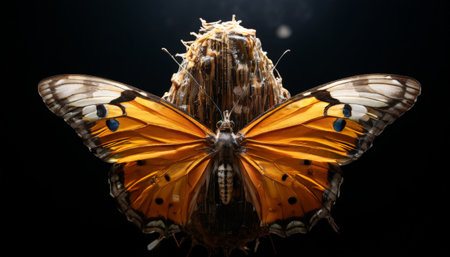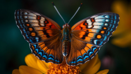 The fragile beauty of a multi colored butterfly in nature elegance generated by artificial intelligence