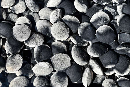 Charcoal Briquettes For BBQ Grill Background Texture Close-up Overhead View