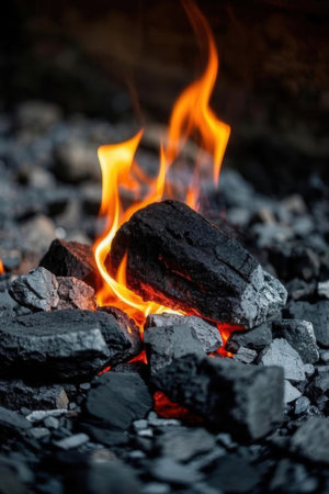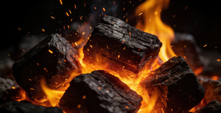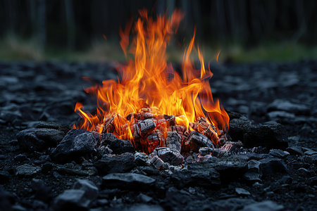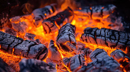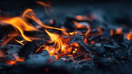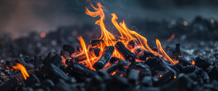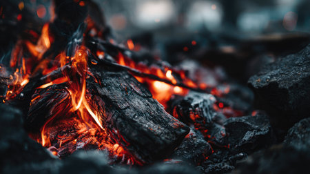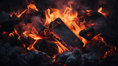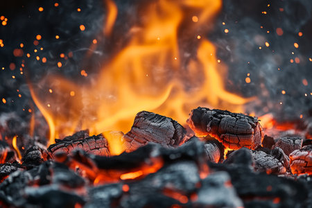 Captivating flames and glowing embers on a bed of hot coals with ample copy space available