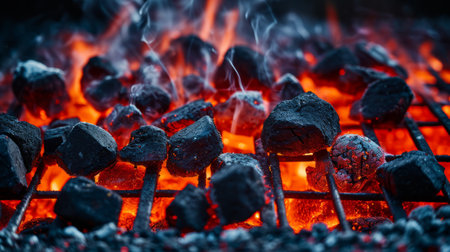 Fiery barbecue scene with glowing charcoal and vibrant flames