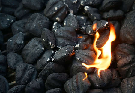 burning charcoal in the fire, closeup of photo with selective focus