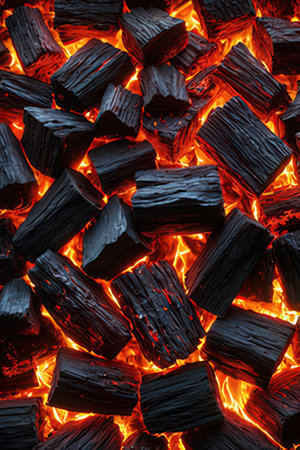 Burning coals of wood as a background.