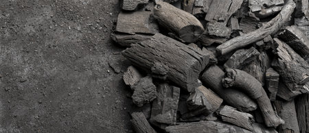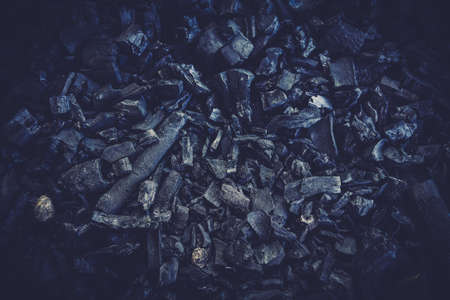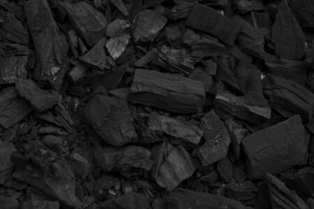 Black charcoal pieces texture background for barbeque, copy space