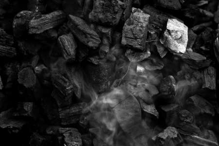 Close-up of black coal in the smoke. Selective focus.