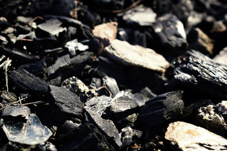 Large black coals from a tree close-up.