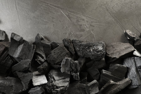 Heap of charcoal on gray background