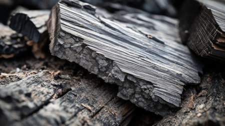 A closeup shot of natural wood charcoal