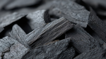 This image showcases a close-up view of natural charcoal pieces, highlighting their unique textures and intricate details. Ideal for artistic and organic design projects.