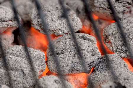 Hot barbeque briquets beneath a grill. You can see the radient heatwaves!