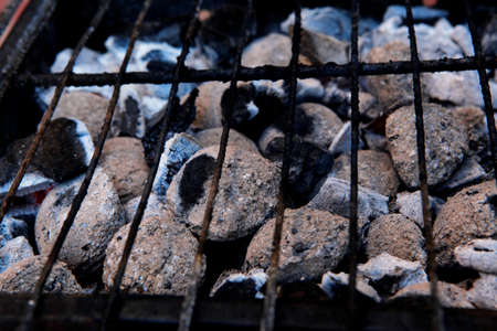 Close-up of burning charcoal in a barbecue. Selective focus.