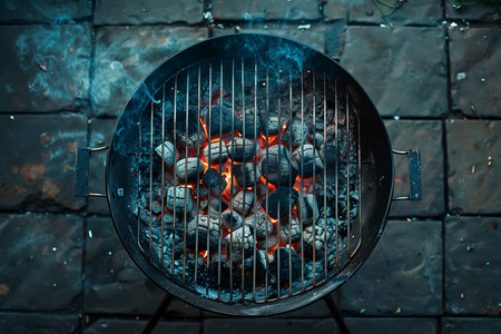 Summer Outdoor BBQ Grill Setup with Hot Charcoal Flames for Perfect Grilling Party Experience