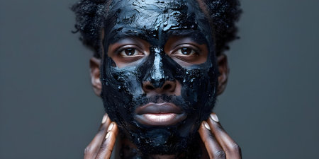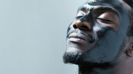 Young man undergoing beauty treatment with charcoal face mask for pore cleansing and rejuvenation