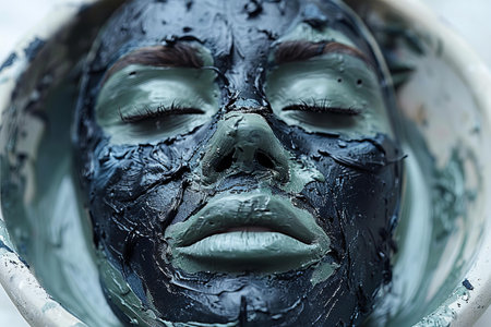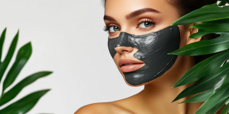 Charcoal Facial Mask on Woman Face, Black Clay Mask, Relaxing Face, Spa Skin Treatment, Generative AI Illustration