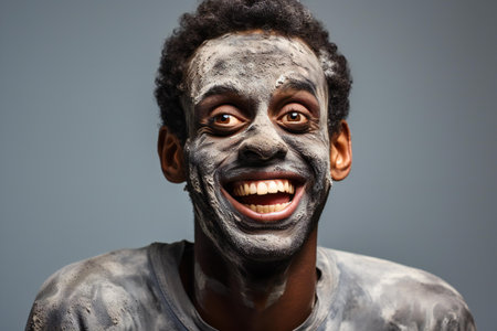 Portrait of a young african american man with facial clay mask on grey background