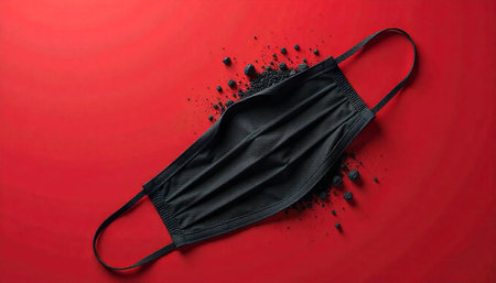 Black face mask on a vibrant red surface