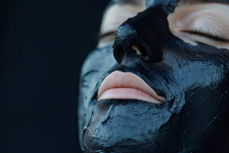 Close up of a woman with a charcoal face mask, enjoying a moment of relaxation during a beauty treatment