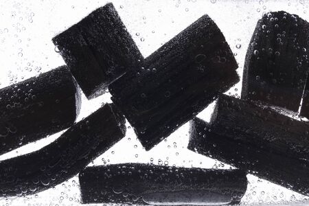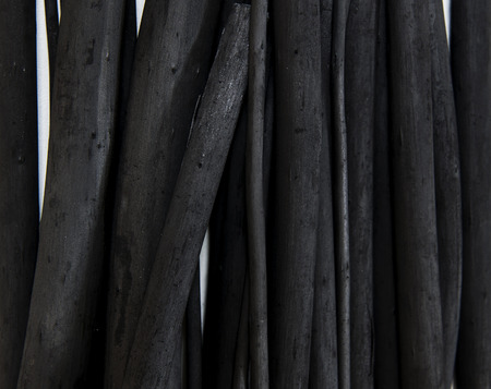 Group of charcoal black color made from real wood in studio close-up shot which use for cooking or absorb odor in room or refrigerator. And use in some cosmetic industry.
