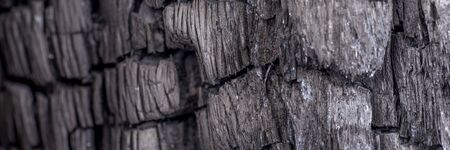 Panoramic black coal background. Wood charcoal texture. Burnt tree