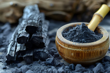 charcoal pack bar made from coconut shell background