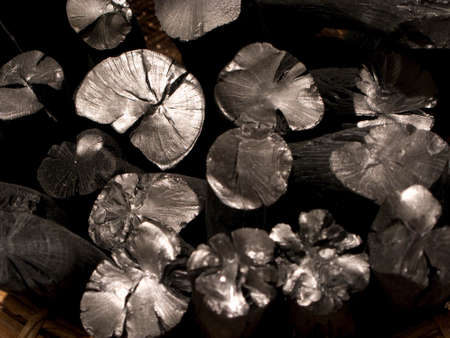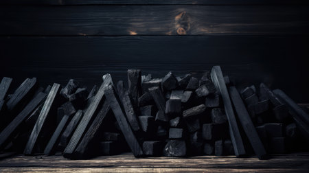 stack of Charcoal Unused burnt black ruined wood