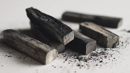 A closeup shot of natural wood charcoal