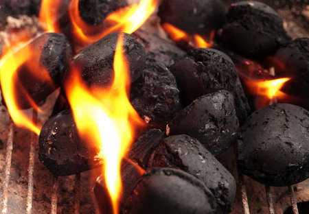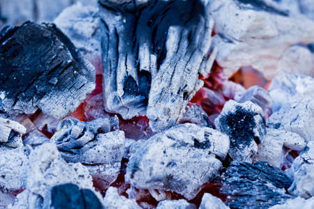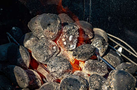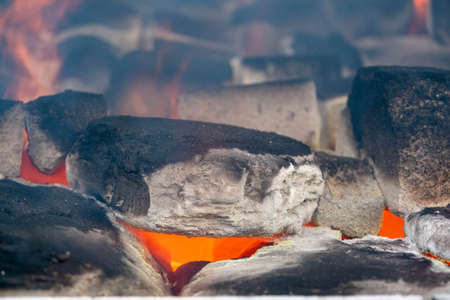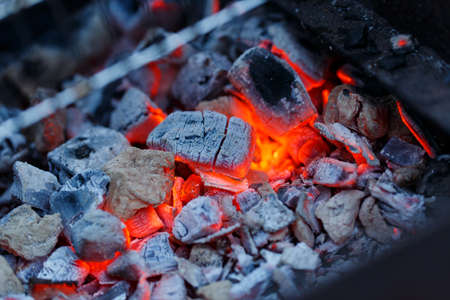 Close-up of burning charcoal in a barbecue. Selective focus.
