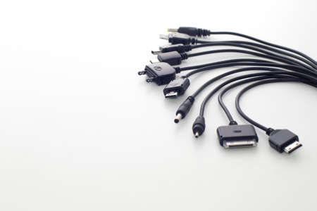 different types of charger connectors for phones, on a white background