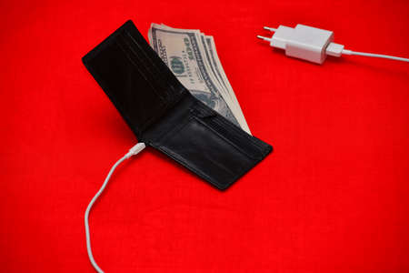 Black purse charged from the network on a red background