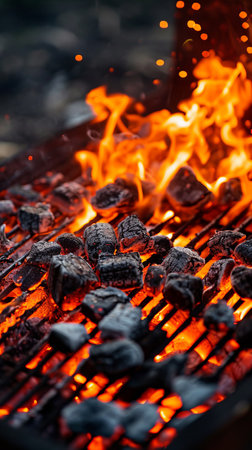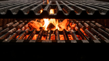 Close Up of Grill With Hot Coals, Fiery Cooking
