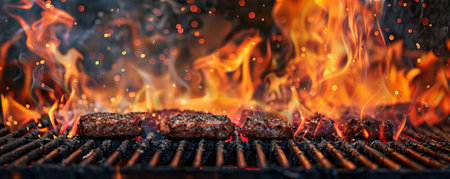 A background of flames rising from a grill, with intense heat and bright colors creating a dynamic and powerful scene.