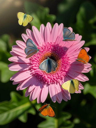 Beautiful monarch butterfly on pink flower in the garden, nature background