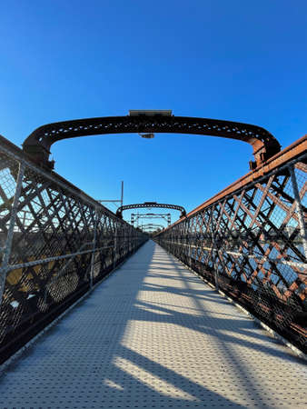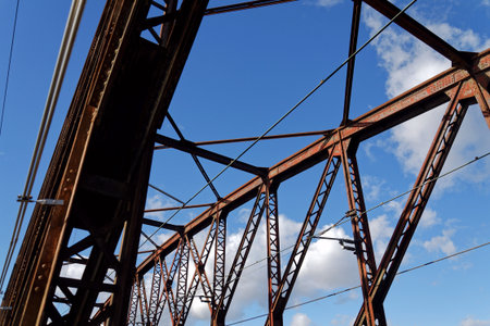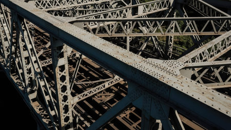 A closeup of the metal structure of an old railway bridge in Germany