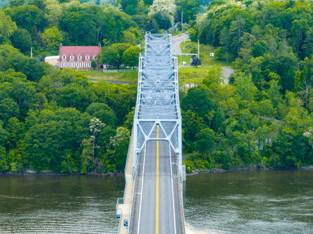 Aerial view of the Rip Van Winkle Bridge spanning the Hudson River between Catskill, NY and Hudson, NY