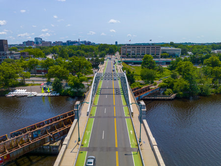 Boston University Bridge aerial view across Charles River connects Cambridge and Boston, Massachusetts MA, USA.